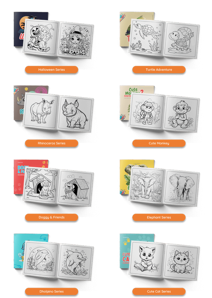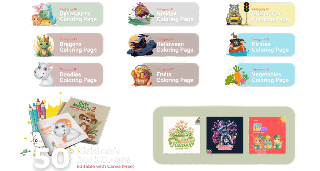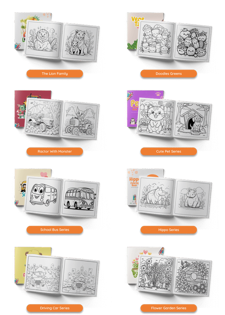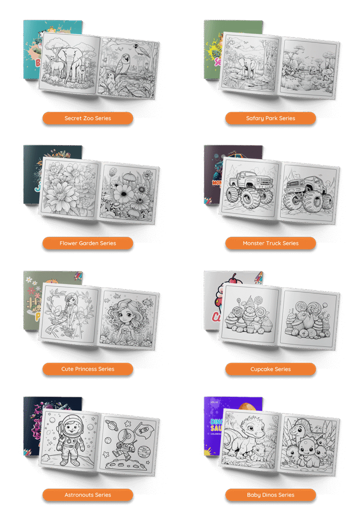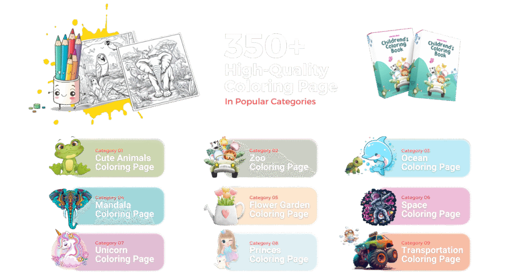 350+ Professional Coloring Pages – Mix, match, and create unlimited book titles.